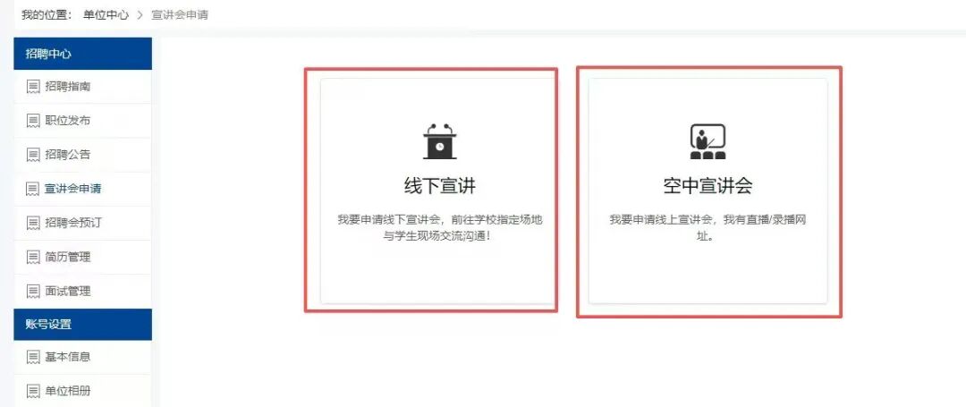 单位中心-宣讲会管理-宣讲会申请